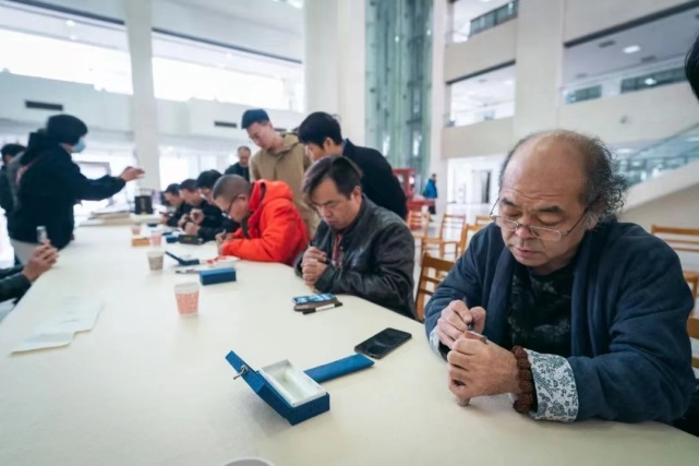 开幕仪式前,与会的艺术家们还向与会嘉宾和师生们现场展示了婉畅流走的篆刻艺术。