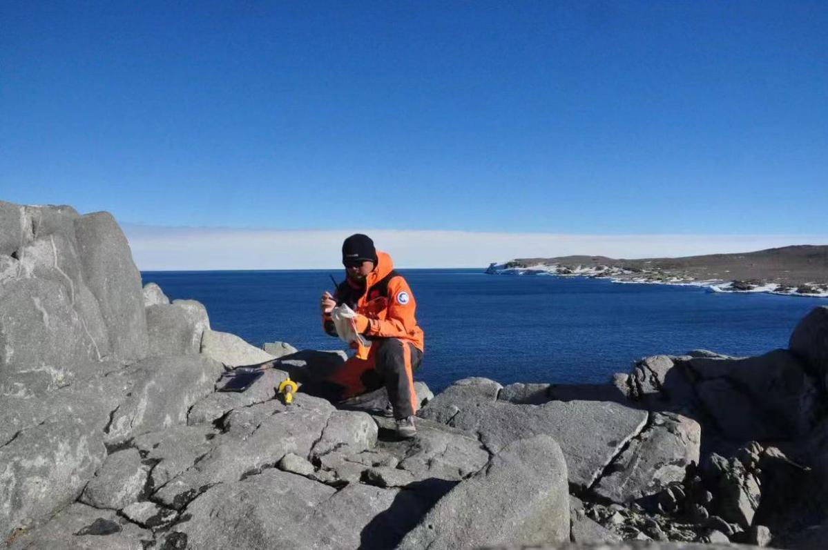刘兆在茹尔群岛(梅瑟半岛)采集麻粒岩样品。(来源 星空线上平台(集团)官方网站)
