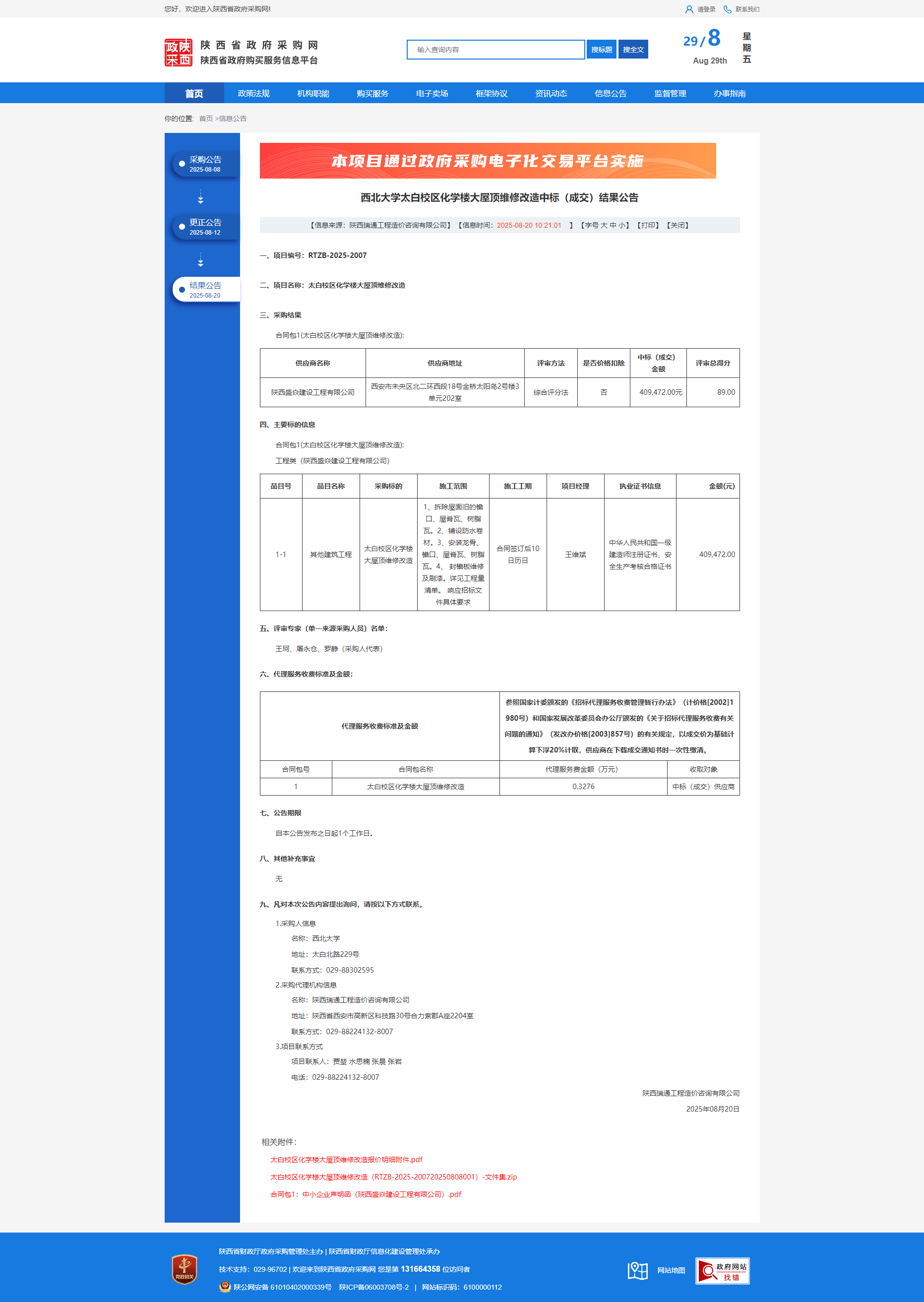 星空线上平台(集团)官方网站太白校区化学楼大屋顶维修改造中标(成交)结果公告